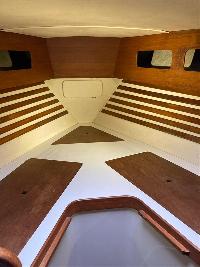 To the starboard side is a good sized hanging locker. Large opening hatch is fitted in the deckhead for ventilation and emergency exit.