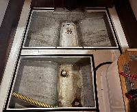 To port is a self-contained fully draining gas locker with 2 gas bottles. Plus a spare.