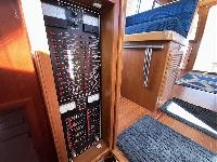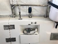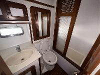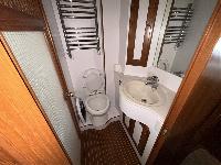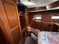 GUEST CABIN: Port Side, Twin Beds, 3 Drawers, Radiator with Thermostat, 3 Cupboards to Port and 3 to Starboard. Large Hanging Wardrobe, 4 Drawers under each Berth, 2 x 240V Sockets, VHF Radio, TV/DVD, 2 x Portholes. Access to En-Suite: Electric JABSCO toilet, Shower, Basin, Storage & Oil Filler Heated Towel Rail