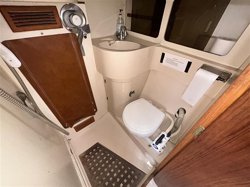HEADS COMPARTMENT: Manual toilet, Sink with H&C Water, Shower (needs to be re-commissioned as current owners don't use).