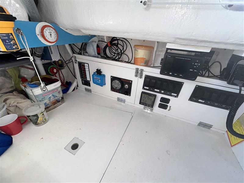 To Port: Chart Table with Instruments, Seating and Storage further forward.
